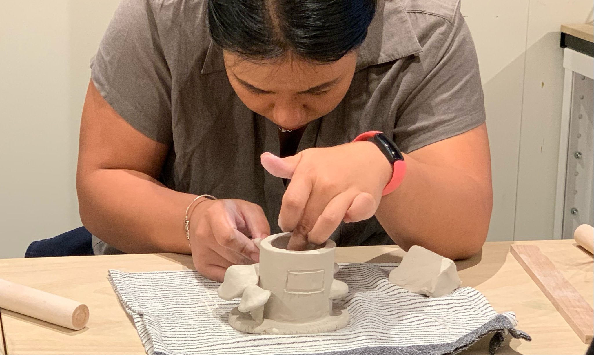 During the class, you will learn how to make texture and practice some of the clay moulding basics such as coiling, pinching and slab forming.